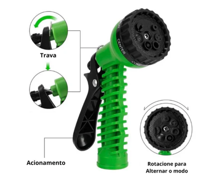 A Mangueira Expansível é resistente e flexível, adequada para diferentes condições de uso. Expande-se de 7 até 25 metros com a pressão da água, permitindo alcançar áreas distantes e lavar o carro inteiro sem esforço. Ideal também para quintais, garagens e áreas externas.