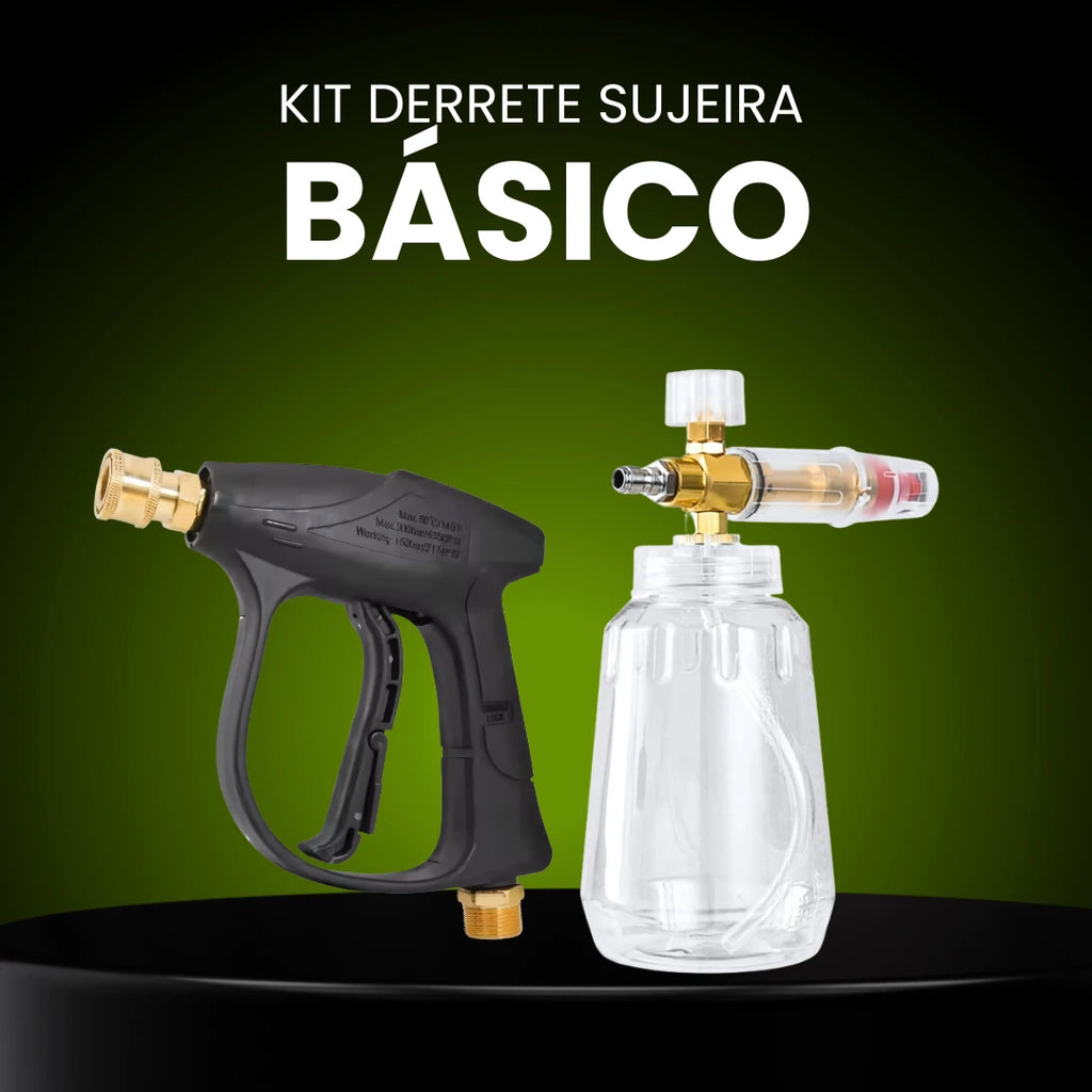 O Kit Derrete Sujeira Básico é a solução completa para quem busca lavagem automotiva prática, eficiente e com resultado profissional. Ele inclui uma Pistola de Alta Pressão 4350 PSI com 4 bicos de diferentes ângulos, um Snow Foam Profissional com regulagem de espuma e um adaptador compatível com sua lavadora, oferecendo tudo o que você precisa em um único kit.